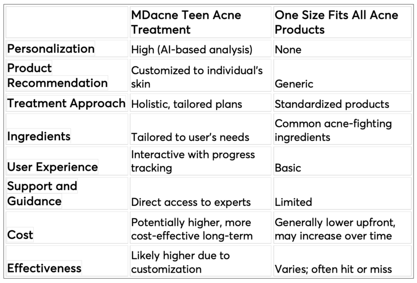 MDacne analyzes your skin type and severity through its app, providing customized product recommendations designed to address your unique concerns.