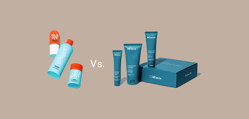 - MDacne offers a customized, medicated acne treatment system with dermatologist support, while Bubble Skincare provides a gentle, non-medicated routine ideal for mild acne.
