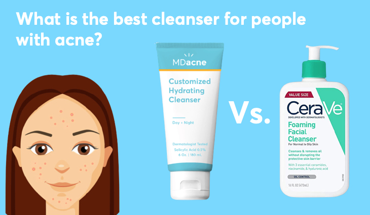 Comparing these two best-selling cleansers, one can find a few differences in purpose, user experience, and safety. The Cerave foaming facial cleanser is more drying and is more suitable for normal to oily skin. MDacne's hydrating cleanser is a cream-based cleanser that produces a thick lather. (not foam) It is more suitable for people with drier skin type, acne, and people with adult acne.